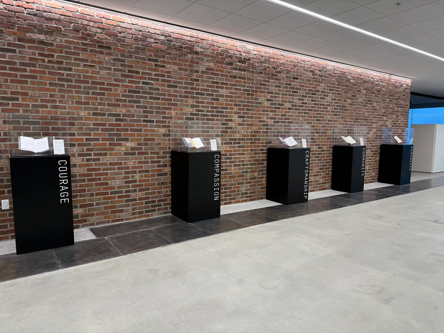 Courage. Compassion. Craftsmanship. Community. Curiosity. Key pillars at the SAP which resonate with those of The Athena Project. Each stand has a first edition book signed by luminaries like the Dalai Lama for Compassion or Nelson Mandela for Courage.